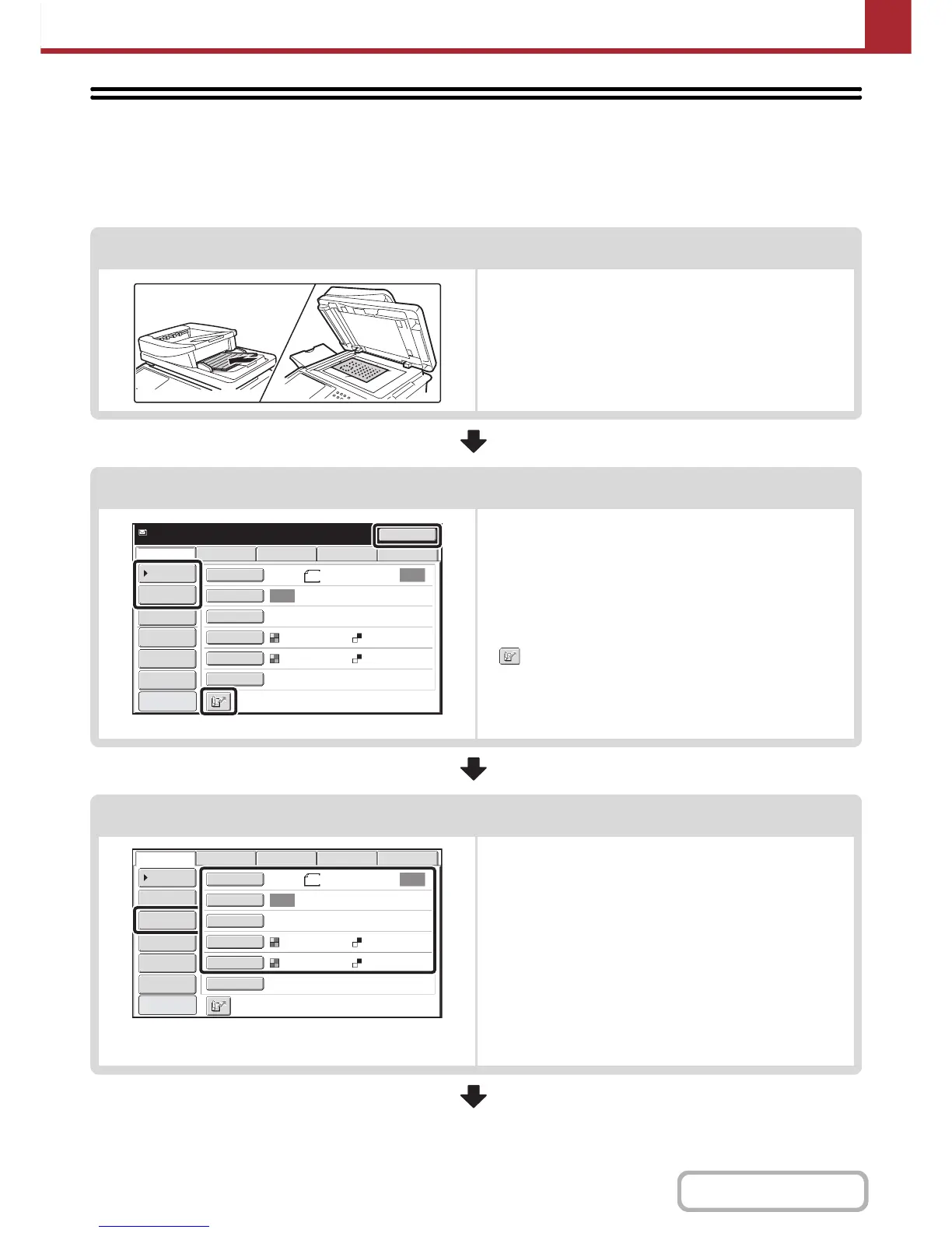 This section explains the basic procedure for scanning and transmission. Select settings in the order shown below to
