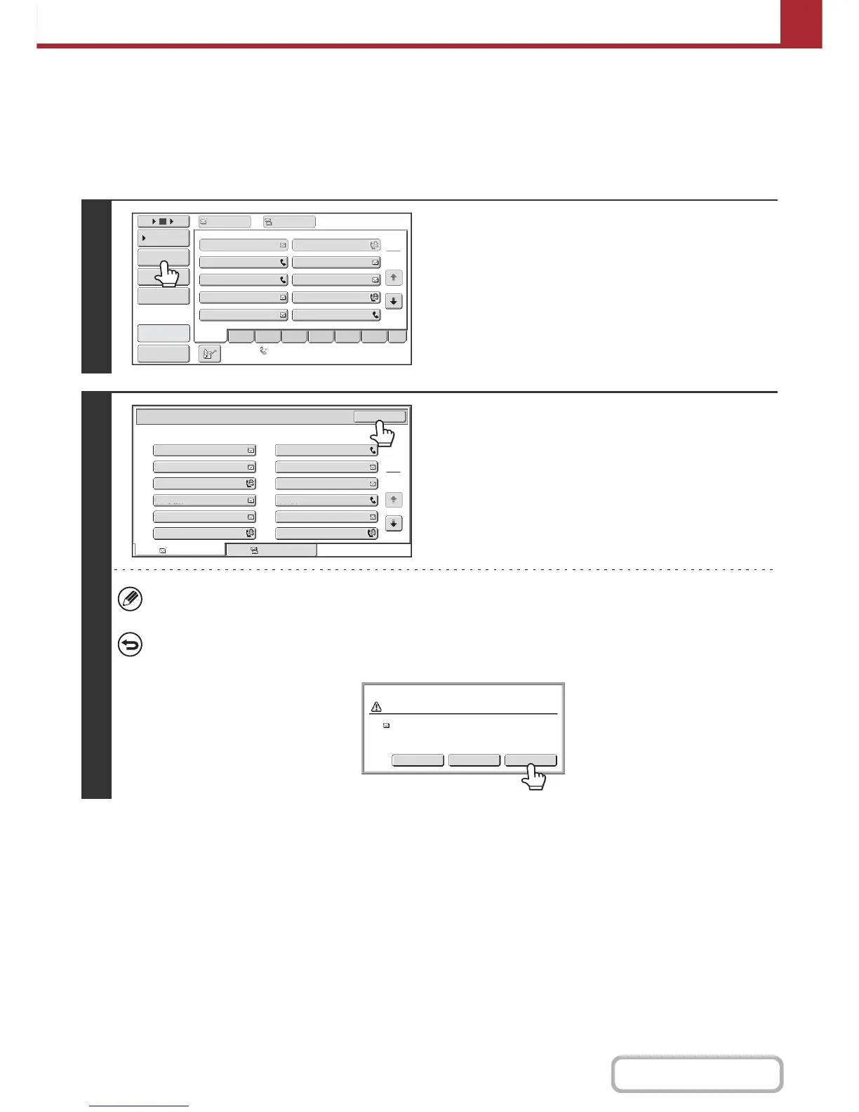 Touch the one-touch key of the destination that you wish to cancel. A message will appear to confirm the deletion.