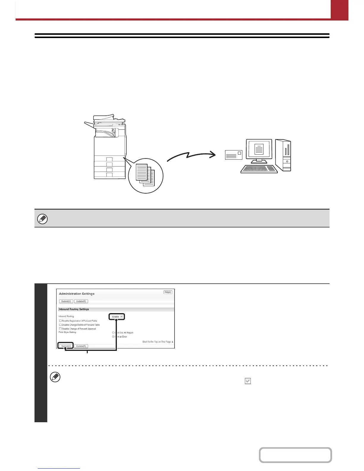 When inbound routing is enabled, you can also specify whether or not you wish the machine to print the forwarded faxes.