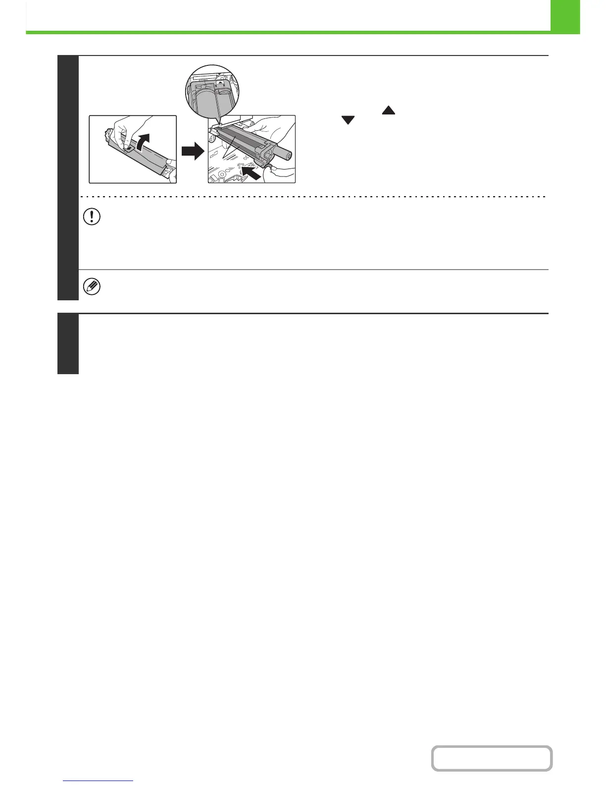 • Do not tilt the drum cartridge or insert it in the wrong direction or orientation. This may damage the drum cartridge or