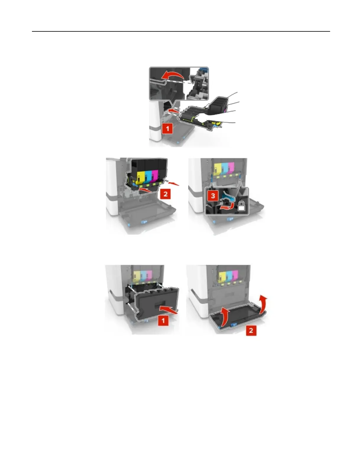 10 Insert the waste toner bottle.