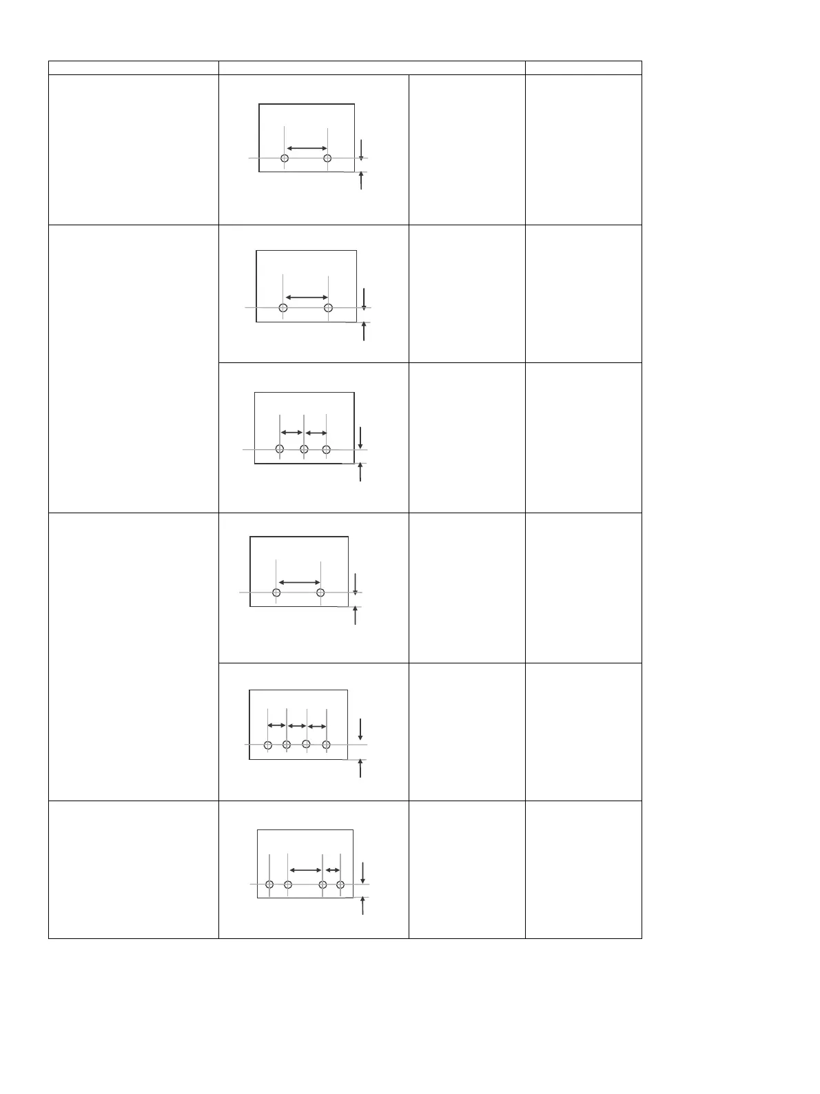 Type Hole position Hole diameter