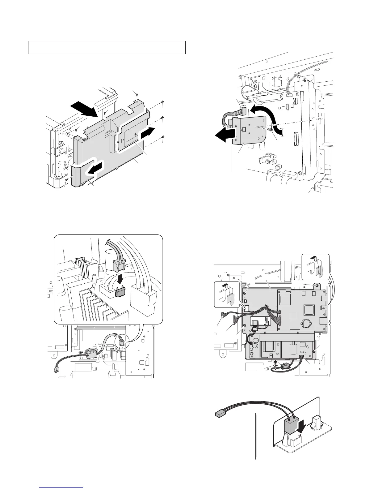 Remove screws. Remove the rear cabinet and the rear cabinet cover.