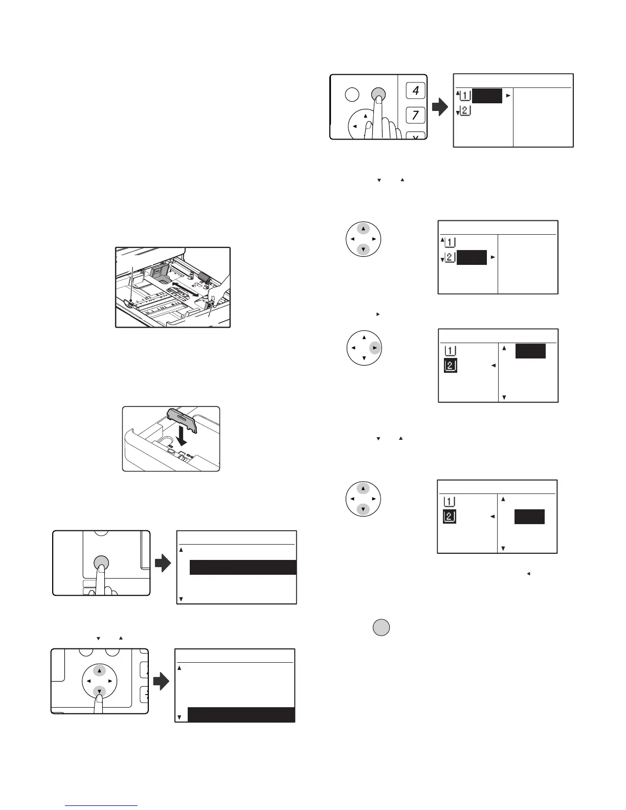5) Press the [ ] or [ ] key to select the paper tray for which the paper