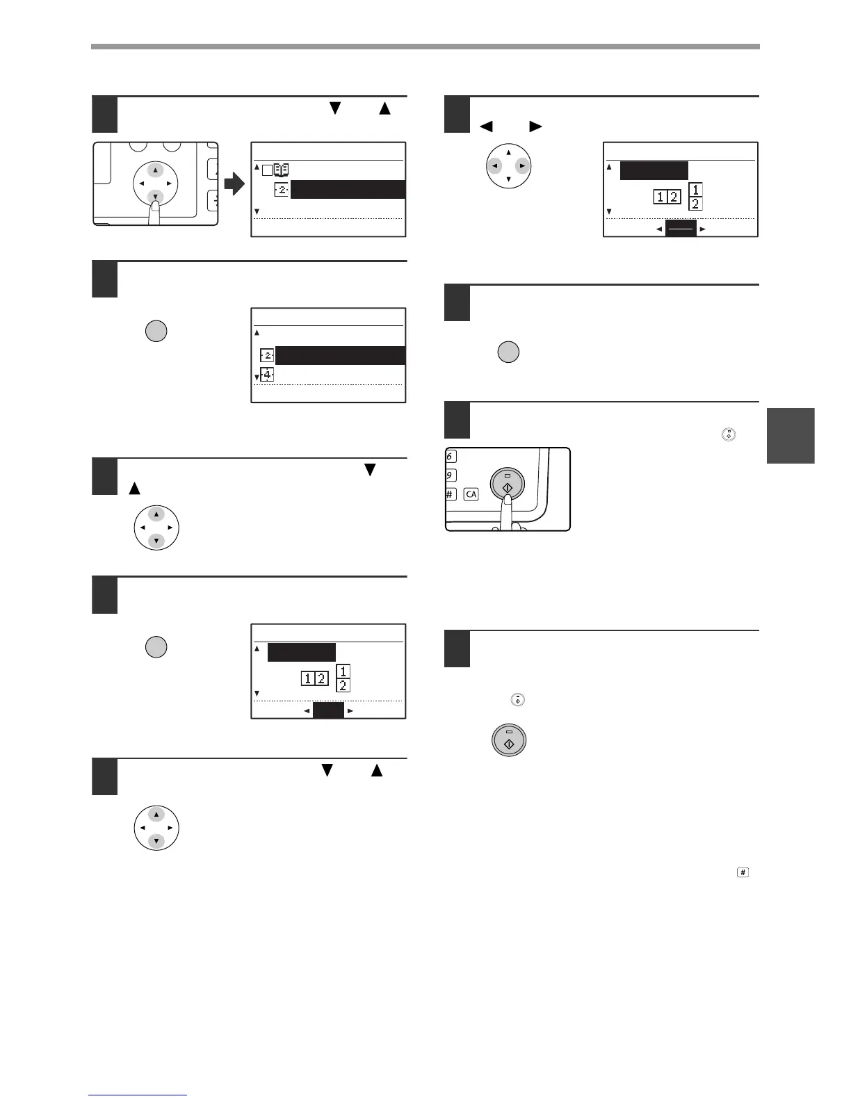 • Copies will be output each time two originals for 2 in