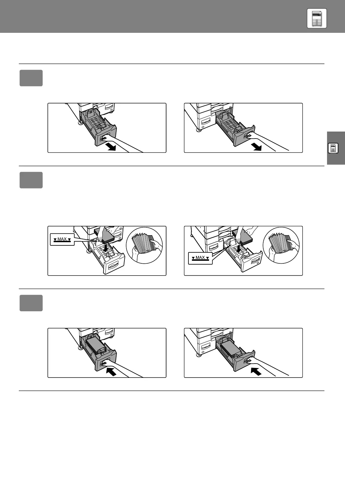 sheets for tray 3, or maximum of 900 sheets for tray 4). The paper must not exceed the maximum number of sheets and