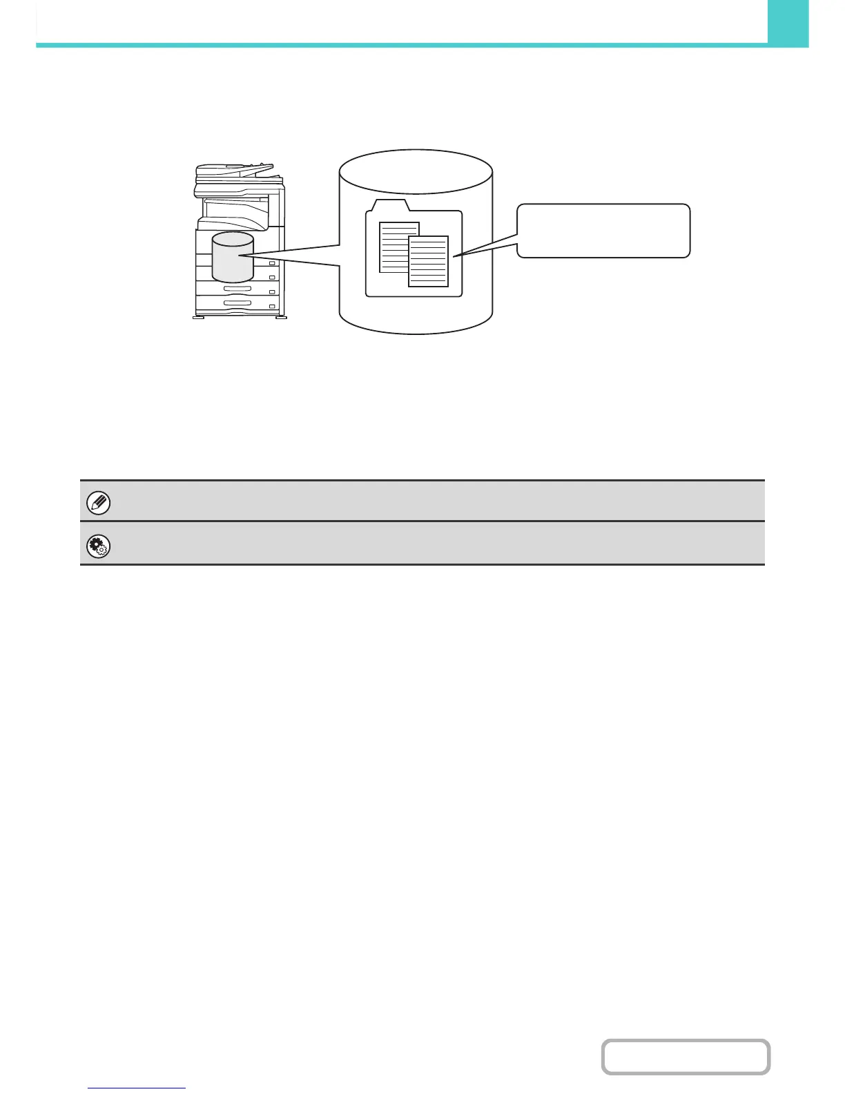 • Files saved using "Quick File" are assigned the "Sharing" property. "Sharing" files can be retrieved and printed or