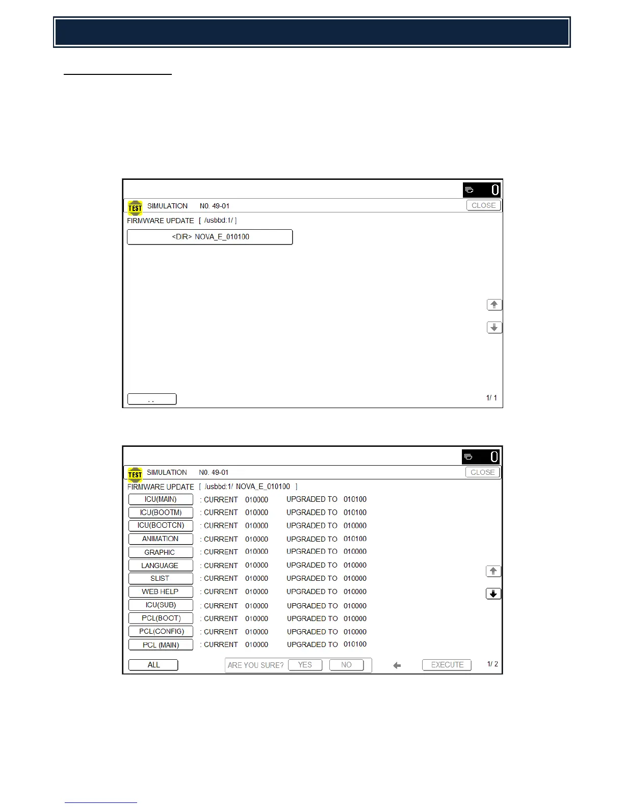 5. Select the required firmware that requires updating - Press Execute & Yes to commence the