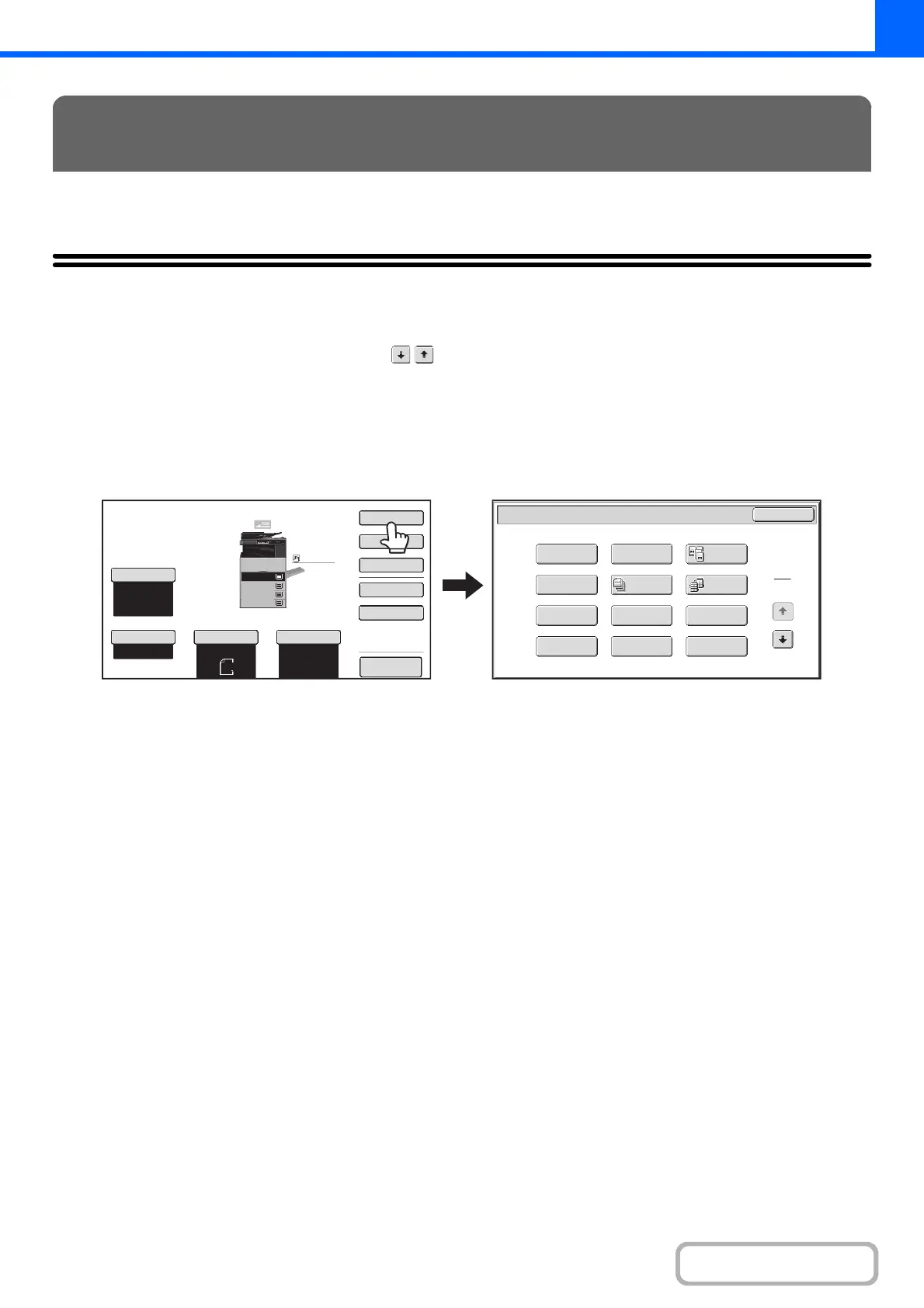 modes menu consists of two screens. Touch the keys to move between the screens. After selecting special