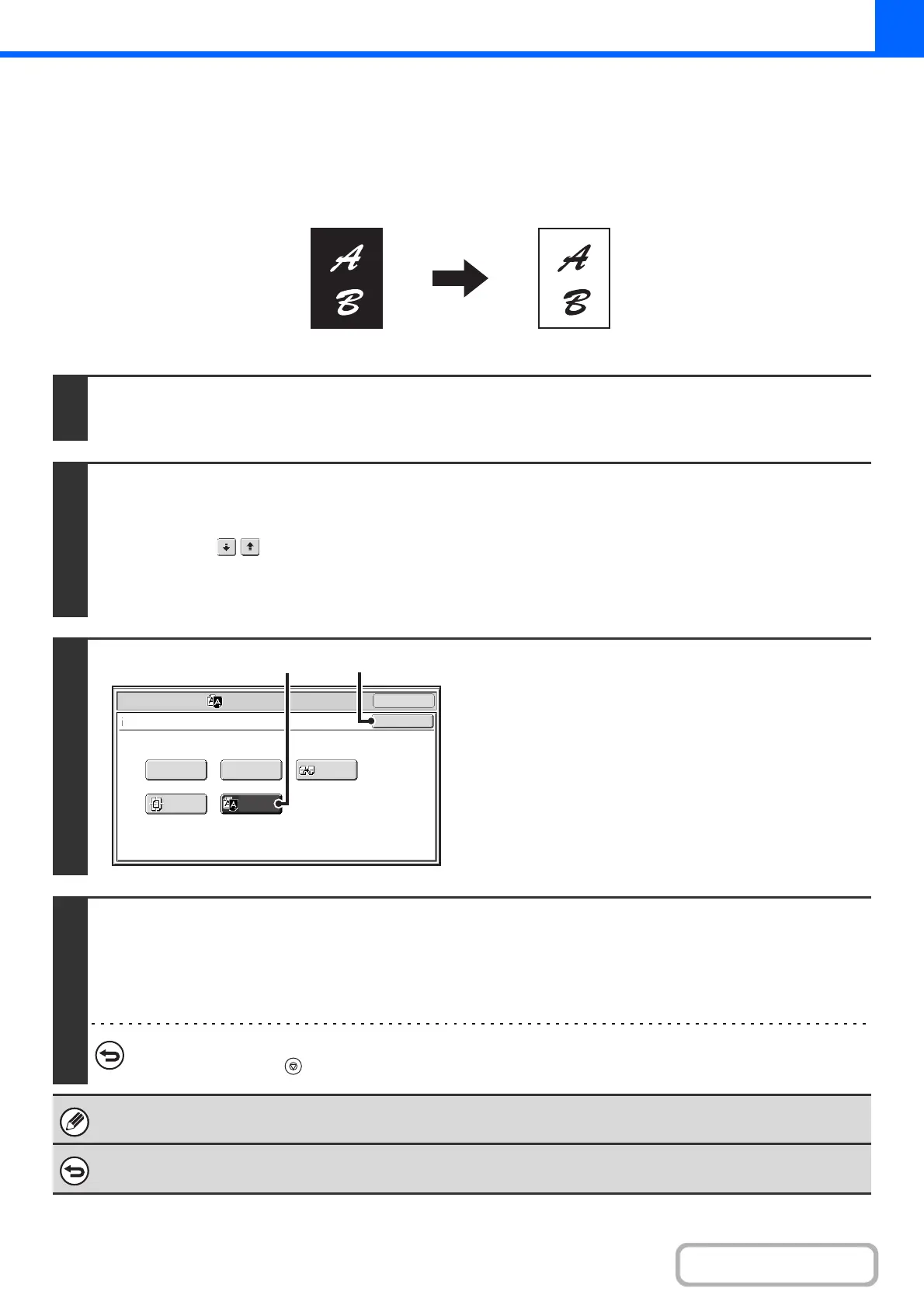 Originals with large black areas (which use a large amount of toner) can be copied using Black/White Reverse to reduce