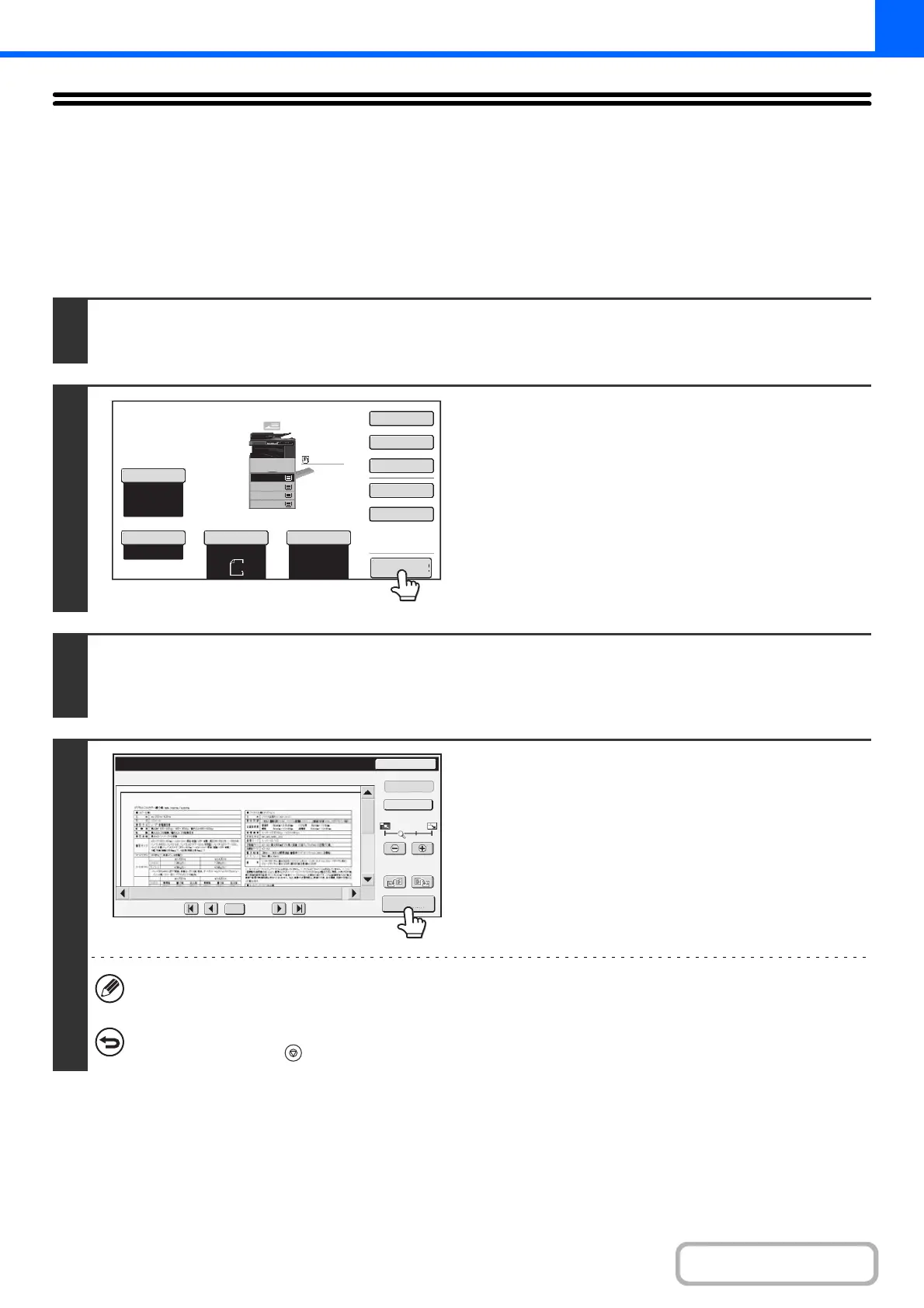 After the original is scanned, a preview image of the copy appears in the touch panel. The copy is not printed until the [Start