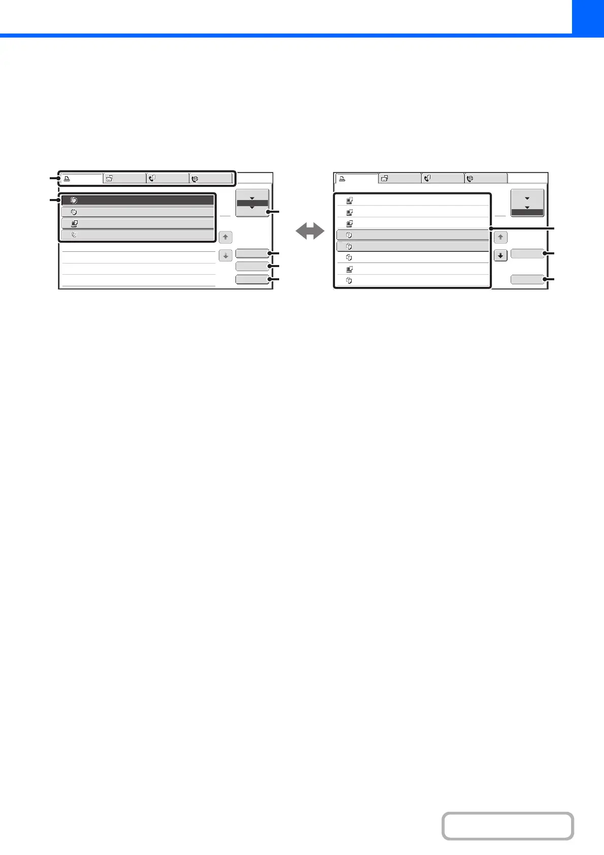 screen switches between the job queue screen and the completed jobs screen each time the job status screen selector