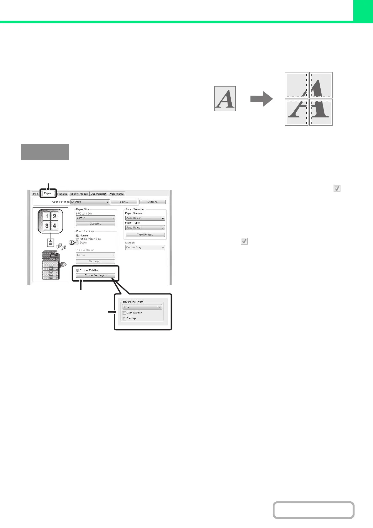 (3 x 3) or 16 sheets (4 x 4)). The sheets can then be