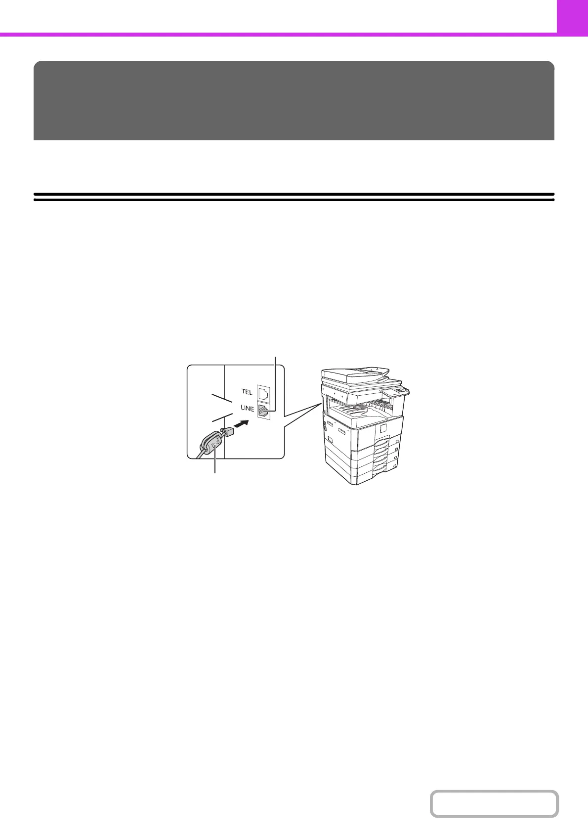 To use the machine as a fax, the telephone line must be connected and the type of line set.