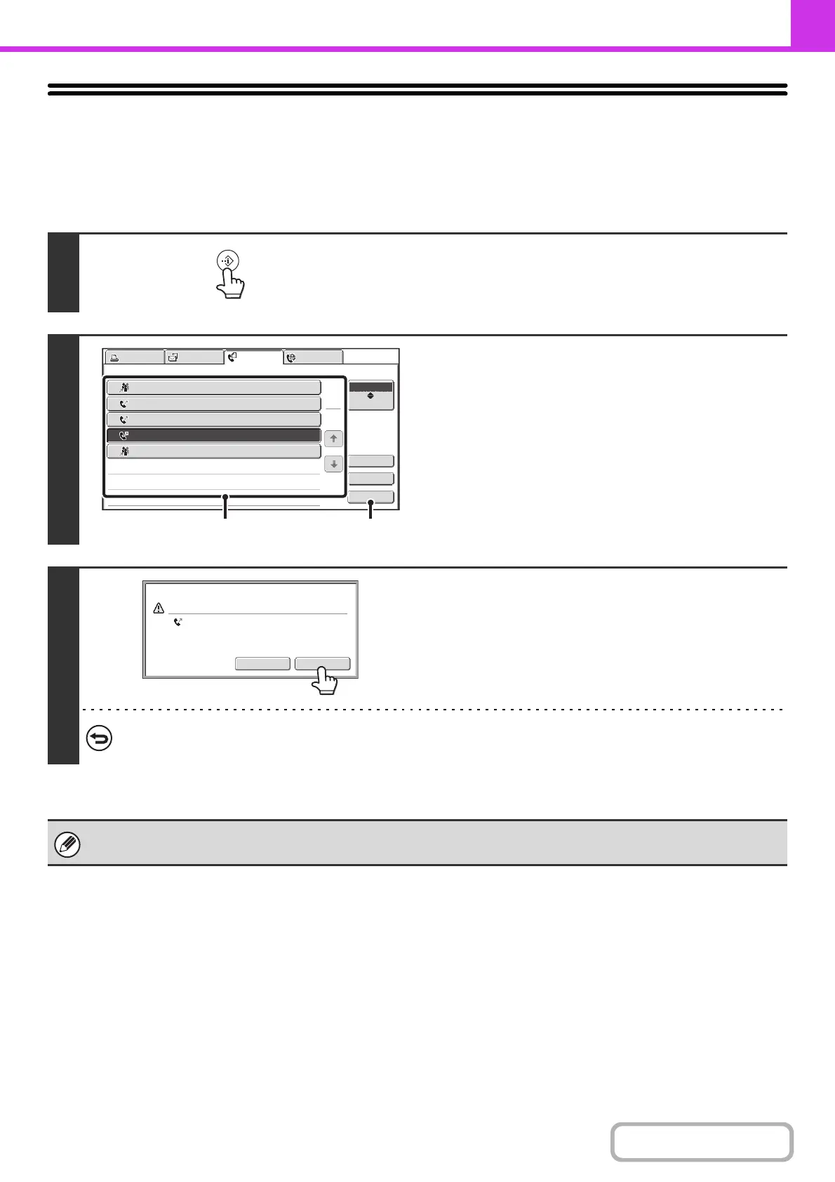 (1) Touch the key of the fax job to be canceled.