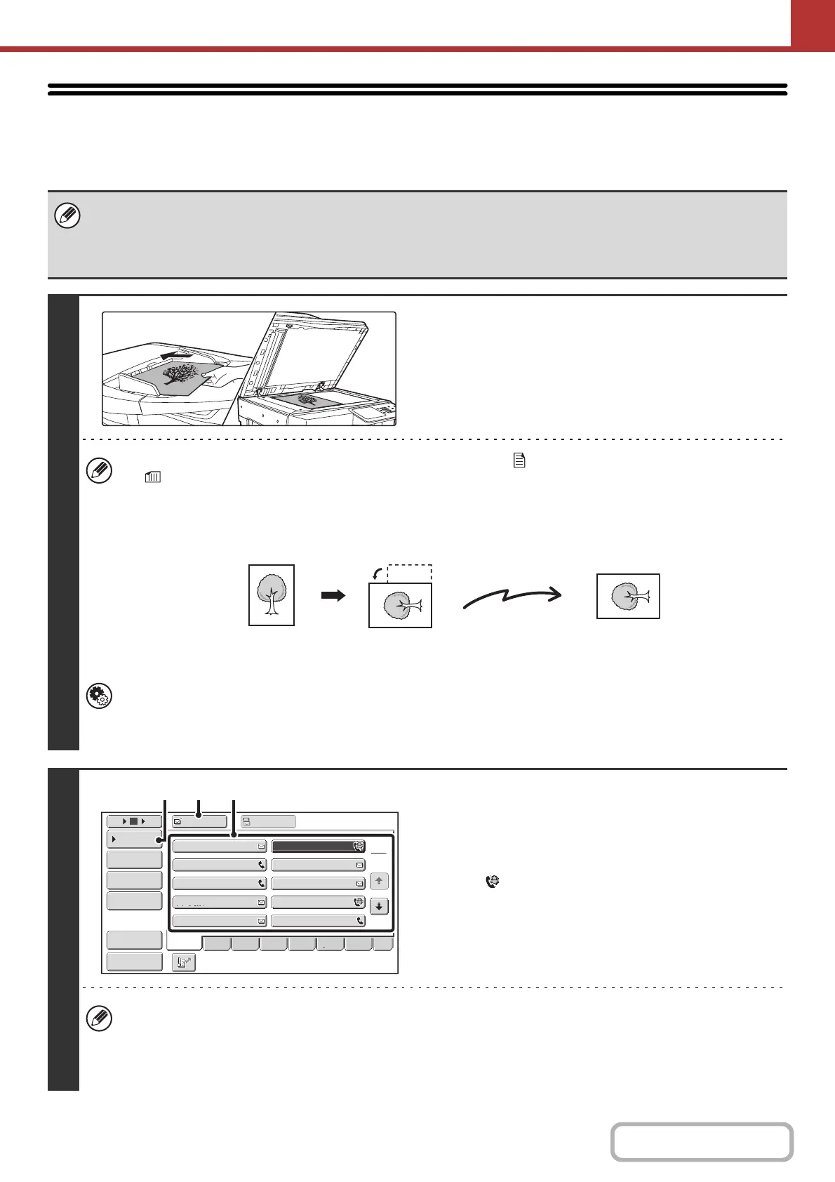 • In addition to specification by a one-touch key, a destination can also be specified by a search number. You can