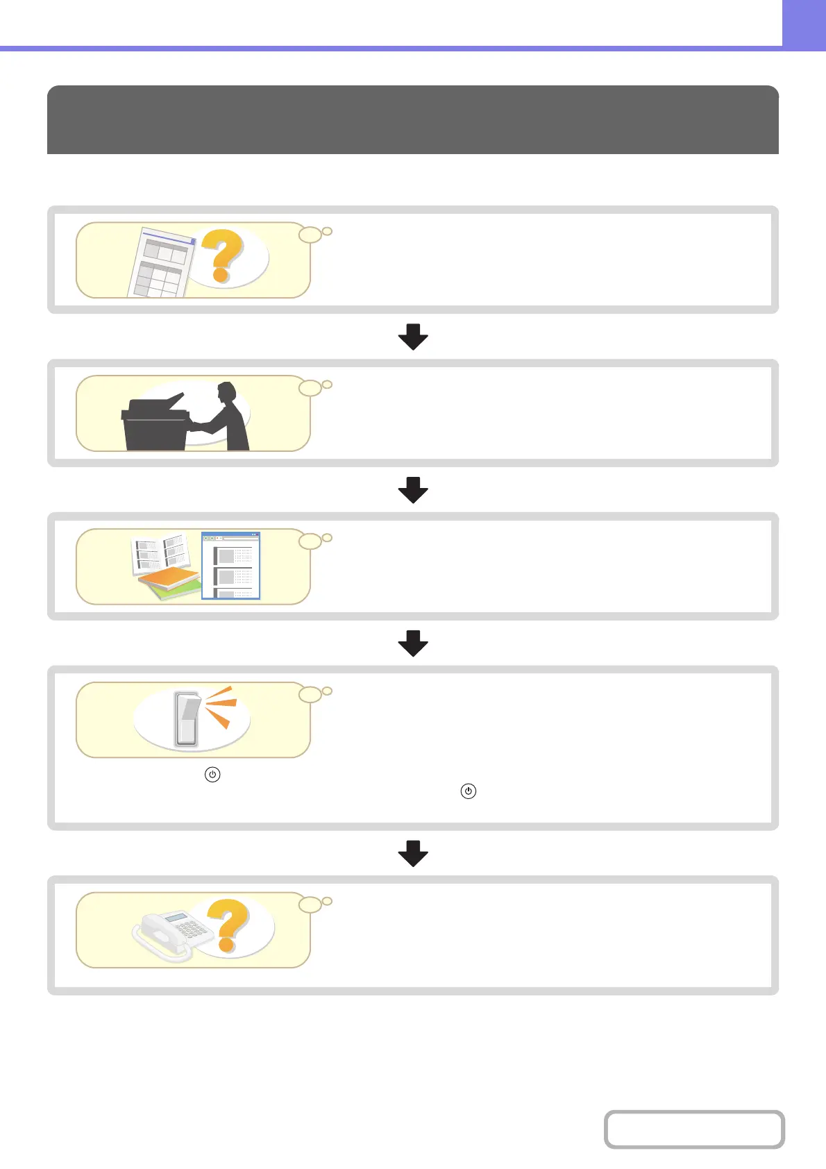The chart below shows the procedure to follow in the event a problem occurs. Use it as a troubleshooting guide.