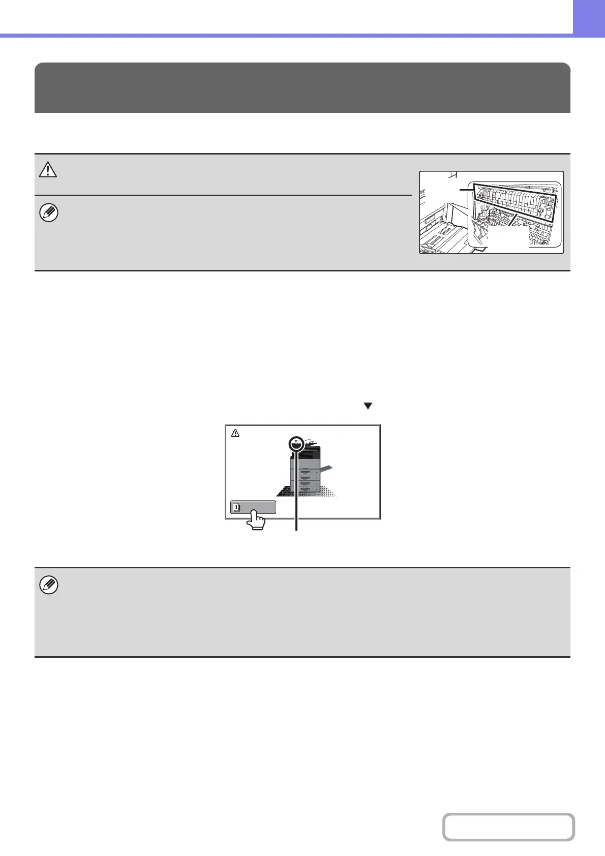 The fusing unit is hot. Take care not to burn yourself when removing a misfeed.