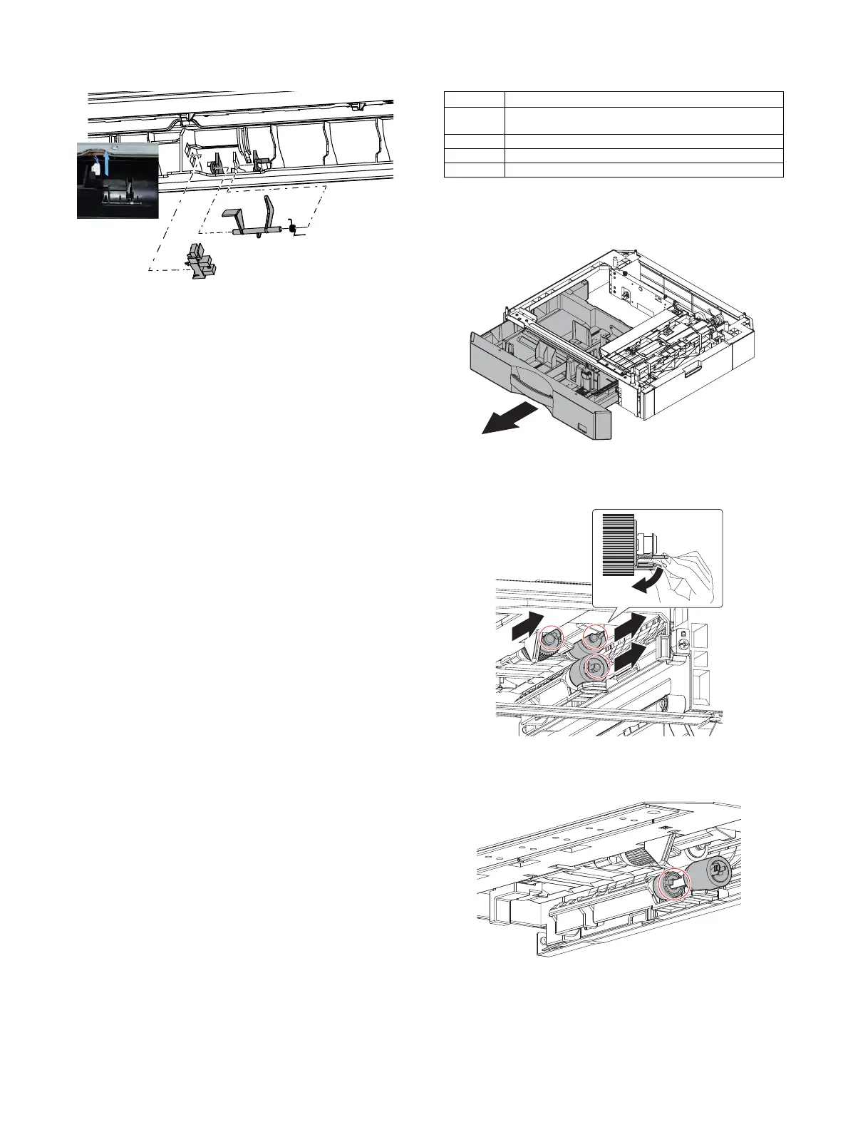 2) Remove the tray pick up roller, the tray paper feed roller and