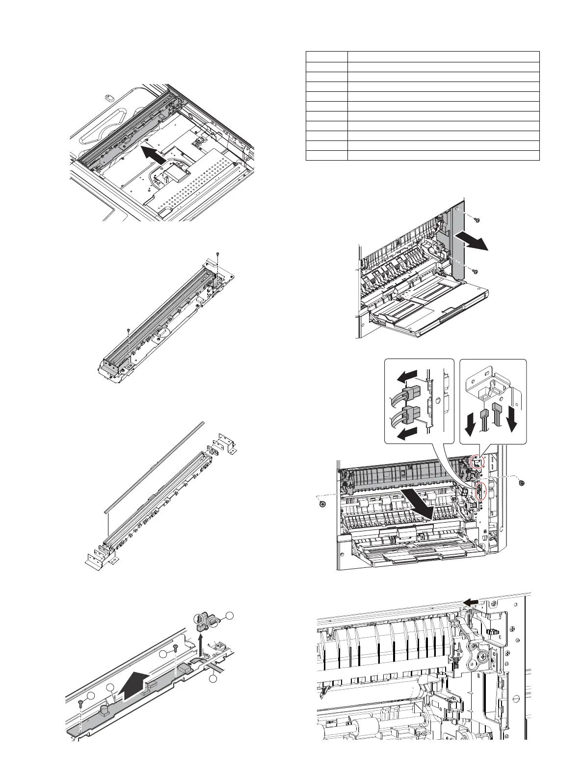 4) Remove the scanner lamp, and the LED PWB. Disconnect the