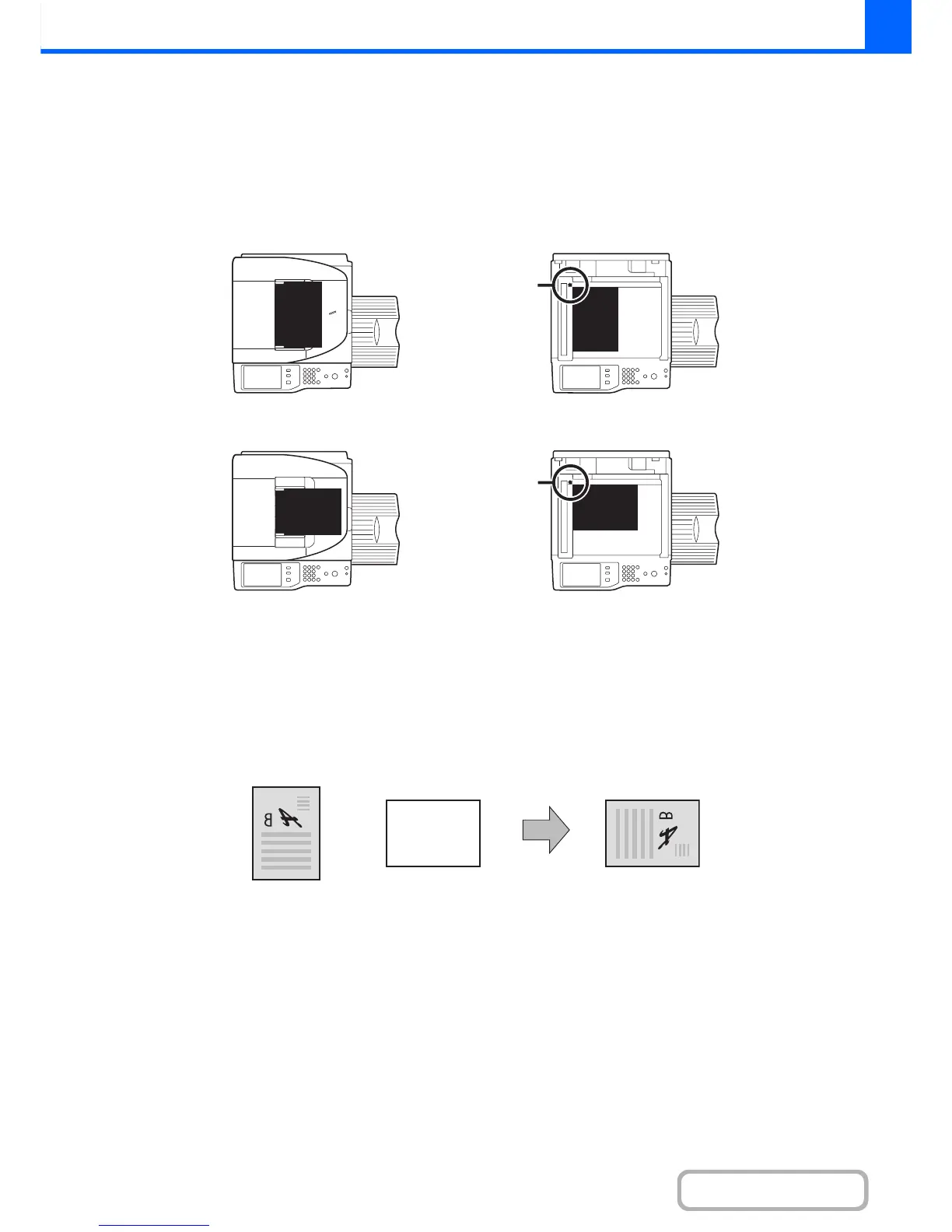 oriented as shown in the illustration. If the original is not oriented correctly and a function such as stapling is selected,