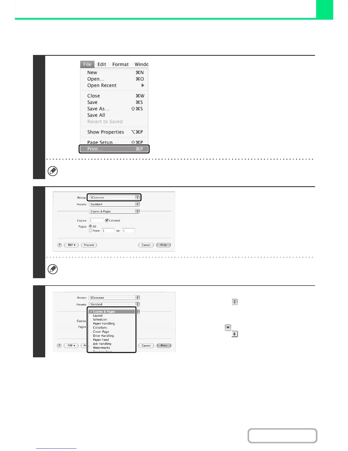 The machine name that appears in the "Printer" menu is normally [SCxxxxxx]. ("xxxxxx" is a sequence of characters