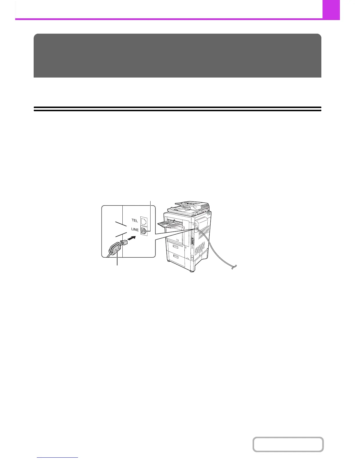 To use the machine as a fax, the telephone line must be connected and the type of line set.