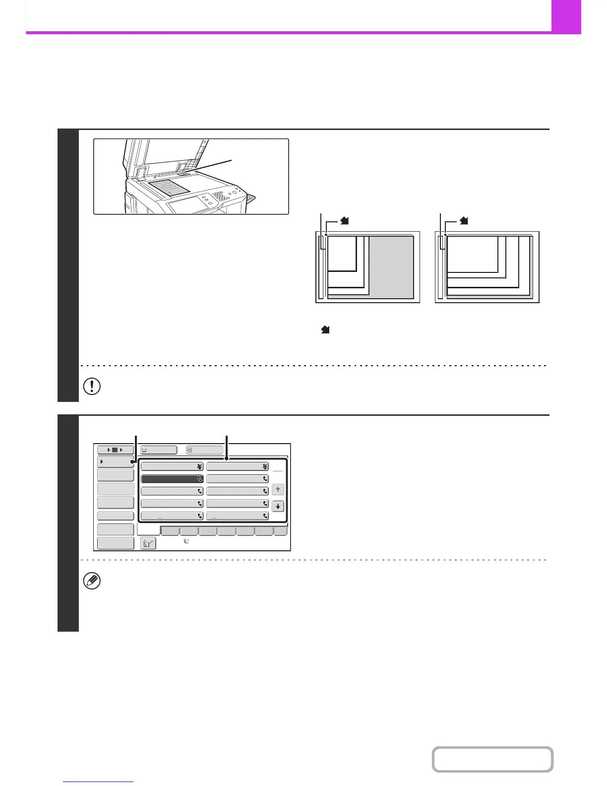 underneath may damage the original size detector plate and prevent correct detection of the document size.