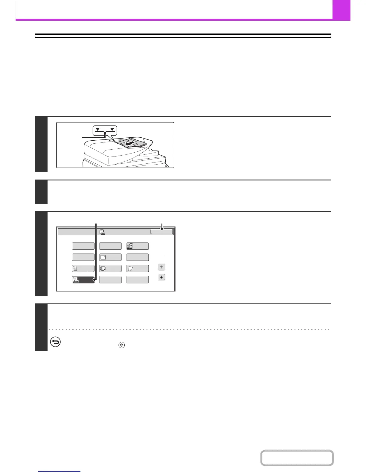 The number of scanned original sheets can be counted and displayed before transmission. Checking the number of