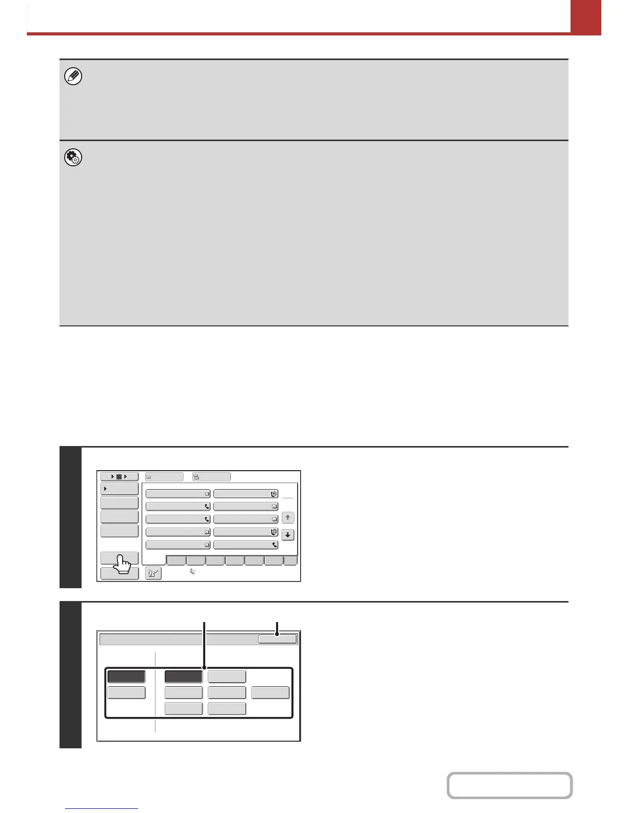 • For information on storing addresses in the address book, see "STORING DESTINATION ADDRESSES FOR EACH