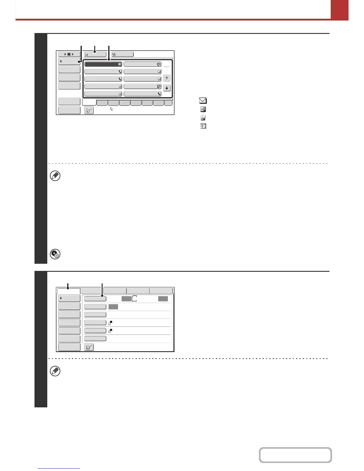 • In addition to specification by a one-touch key, a destination can also be specified by a search number. Destinations