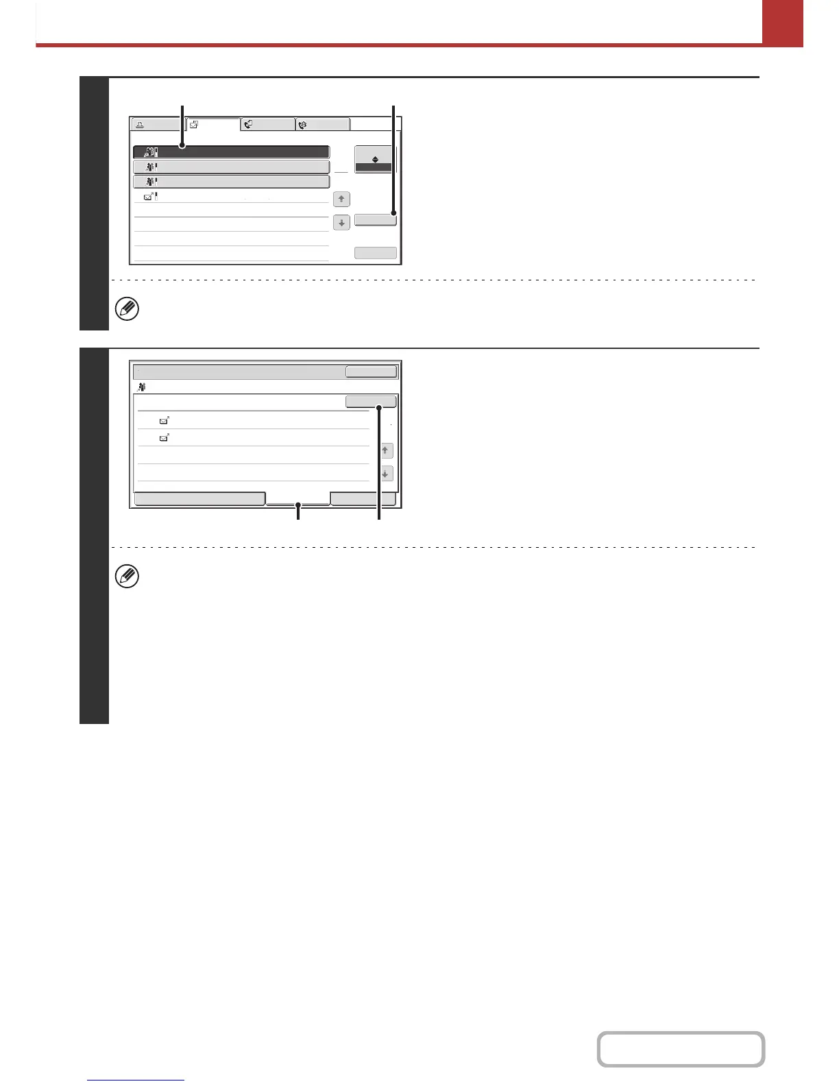 • If the [All Destinations] tab is touched in (1), all destinations will be displayed. The [Retry] key that appears in the