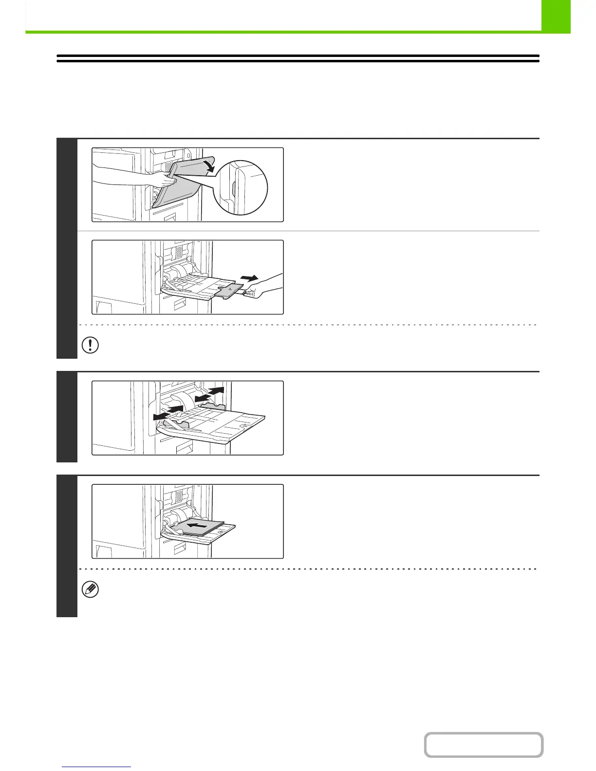 The bypass tray can be used to print on plain paper, envelopes, label sheets, tab paper, and other special media. Up to
