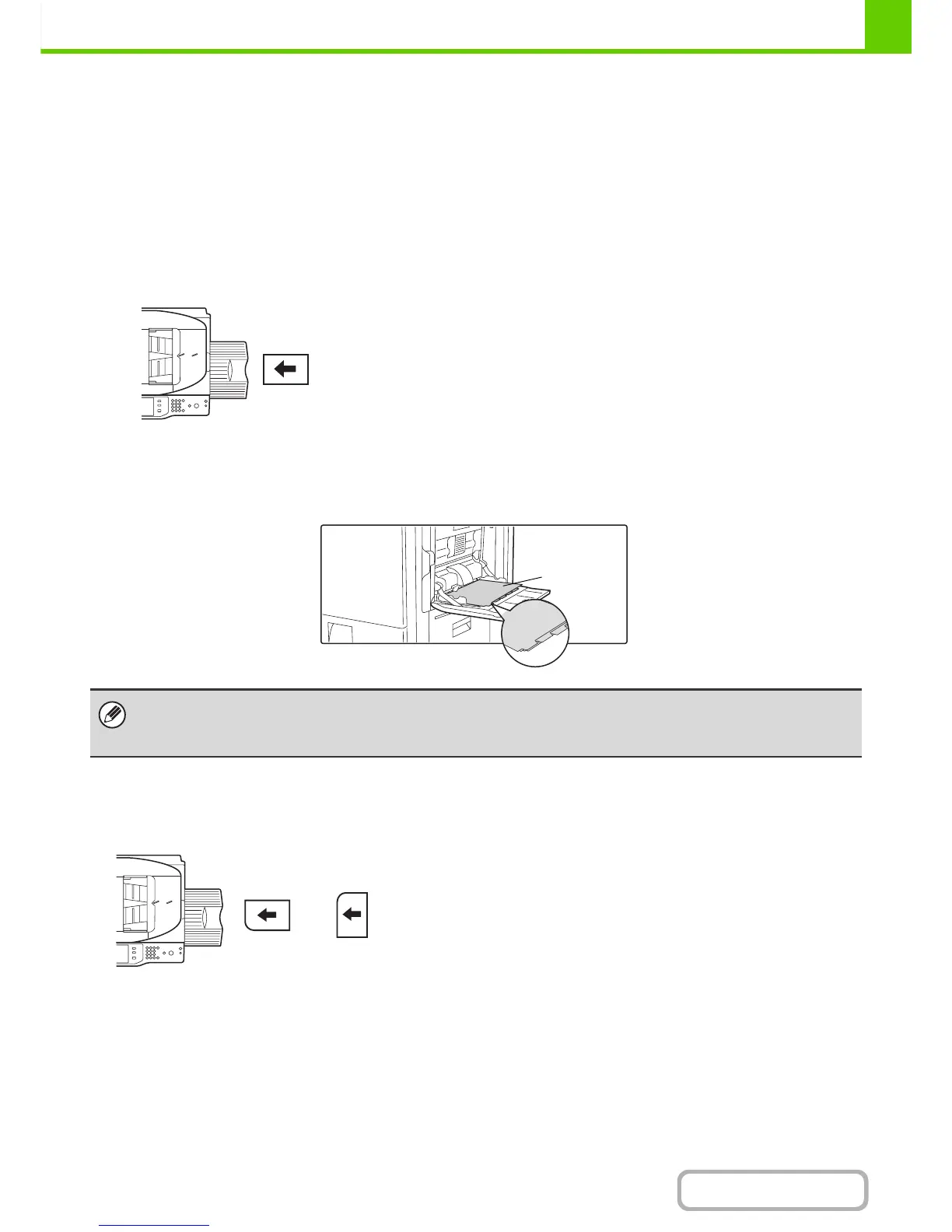 transparency film, or when printing on the reverse side of previously used paper, the paper must be loaded one sheet
