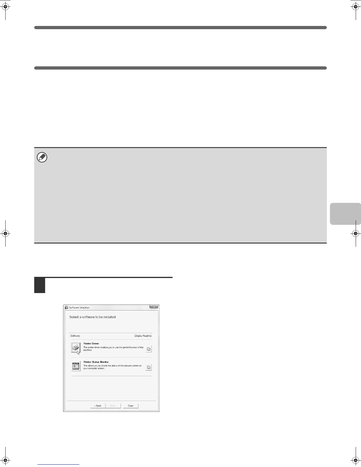 • The installation procedure in this section is for both the printer driver and the PC-Fax driver, although the explanations are