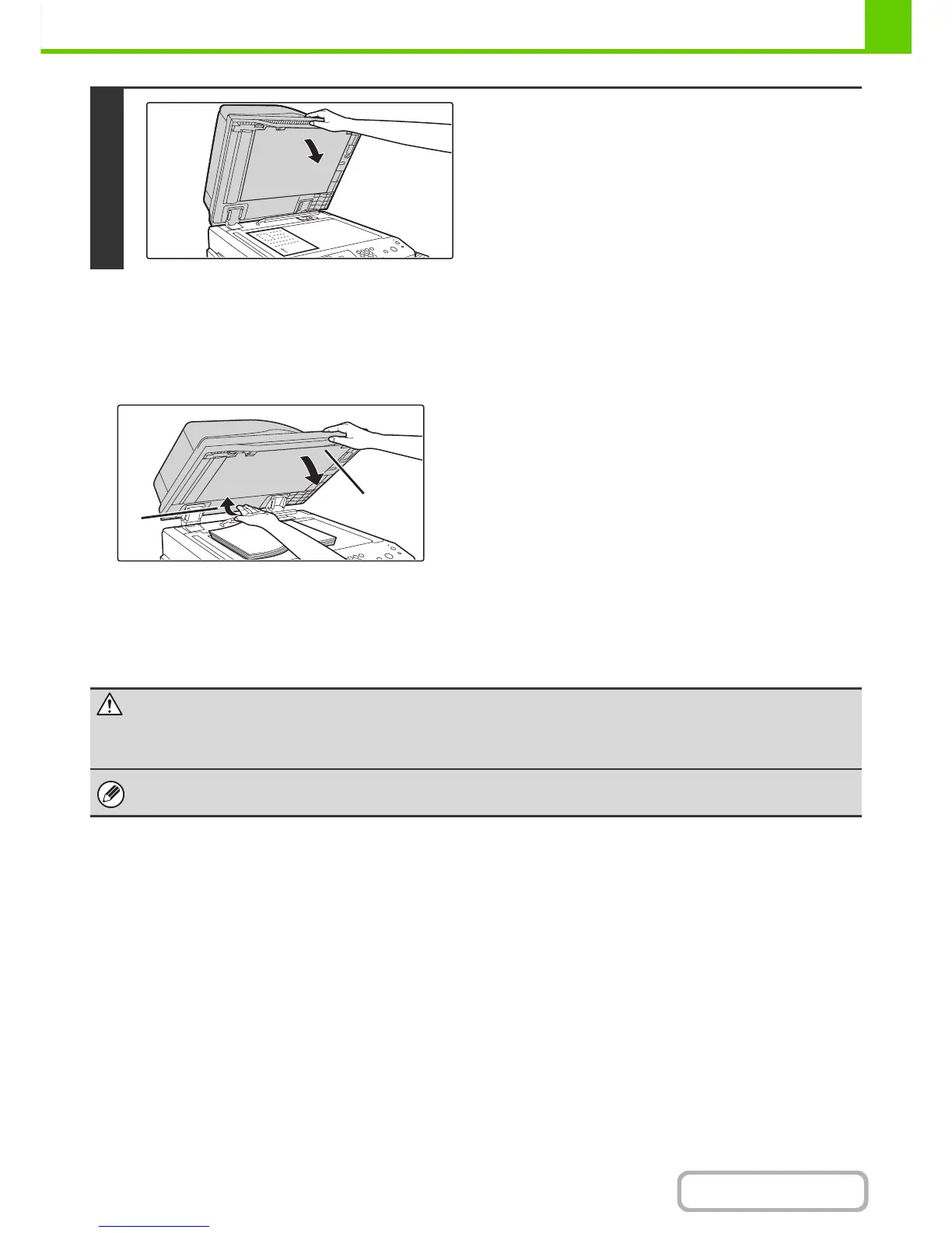 • Close the automatic document feeder slowly. Abruptly closing the automatic document feeder may damage it.