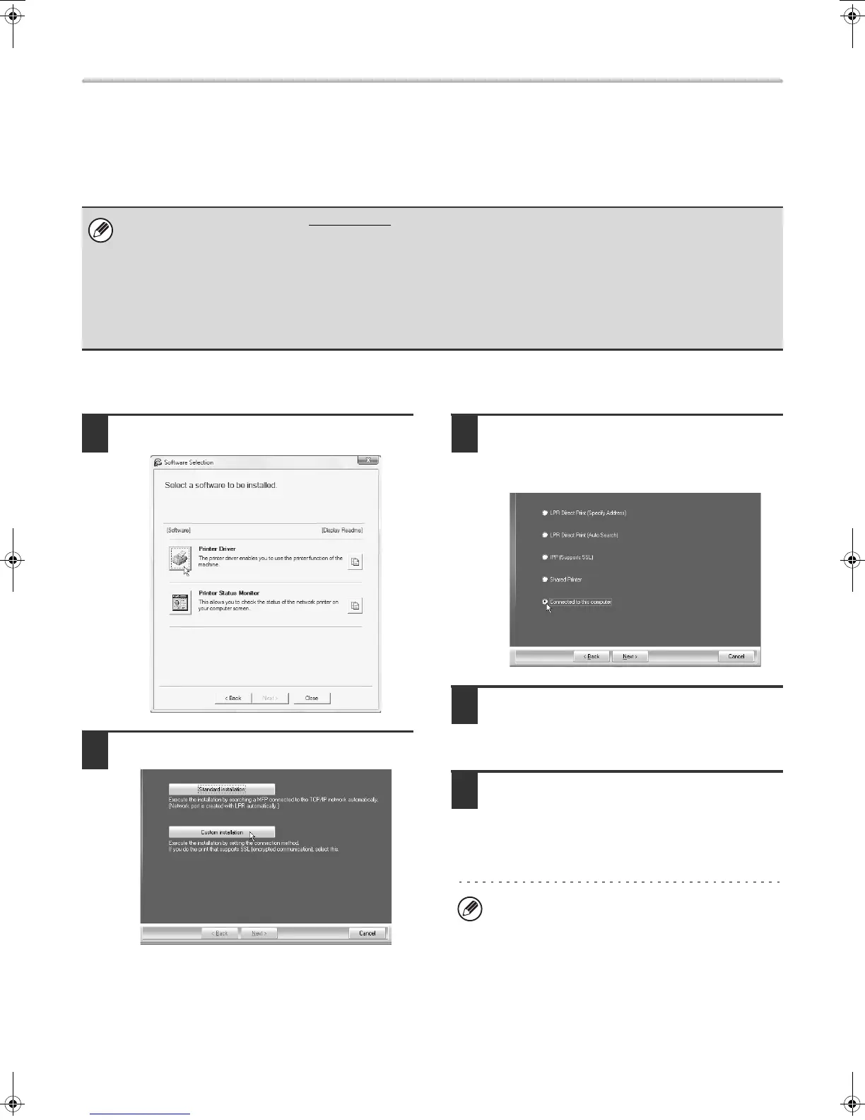 • To use the port created when the printer driver is installed for fax data transfer, install the printer driver first and then install
