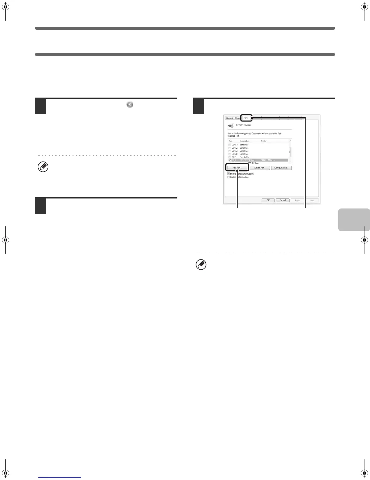 When using the machine in a Windows environment, follow the steps below to change the port when you have changed