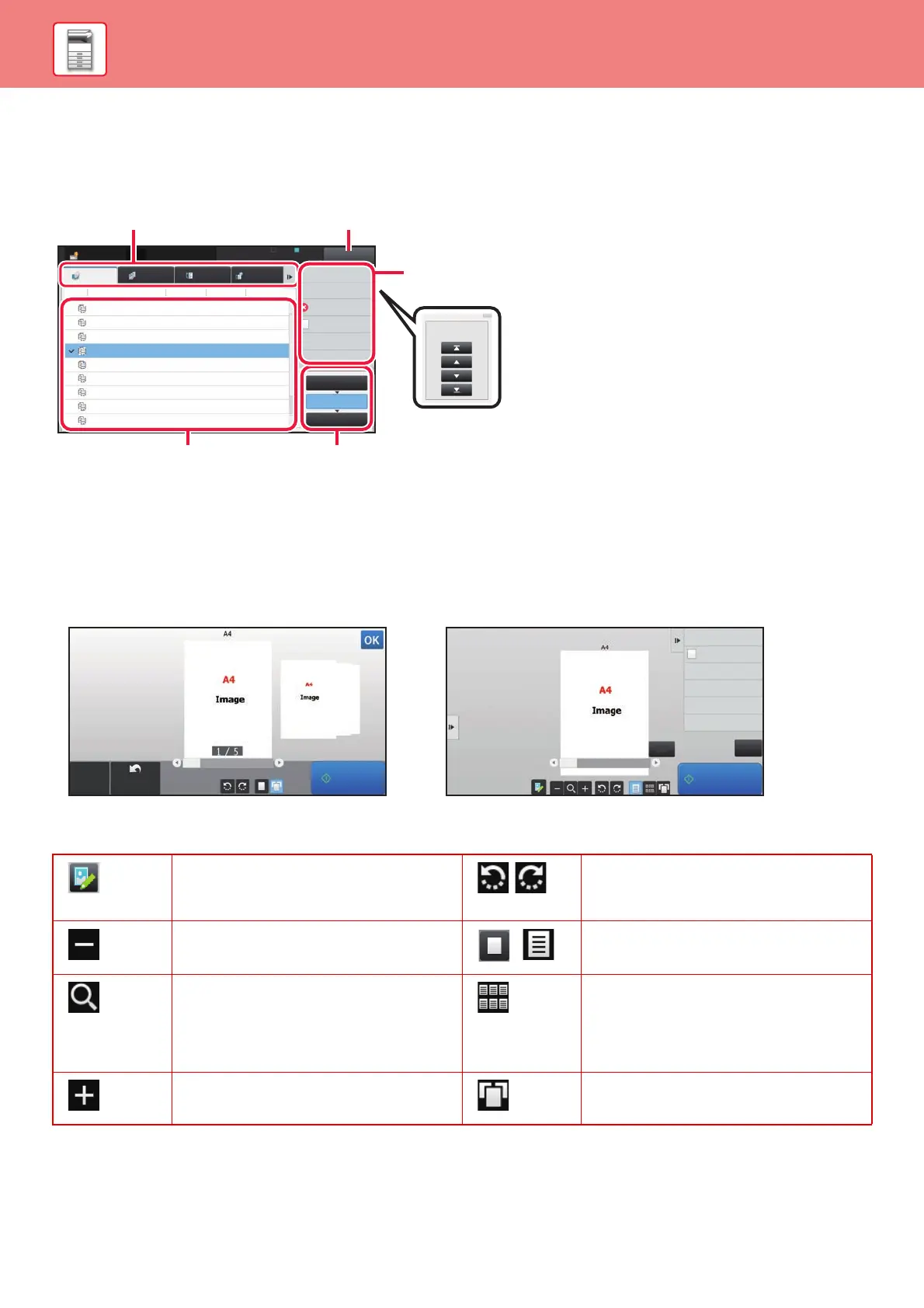 You can tap the [Preview] key to open the Preview screen. In the Preview screen on the touch panel, you can view