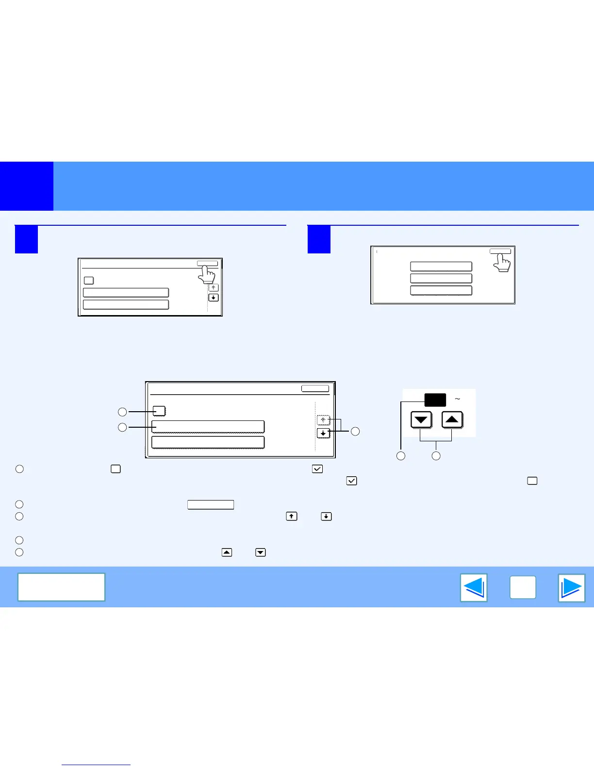 If the settings continue on the following screen(s), touch the and keys to move back and forth through the screens. To