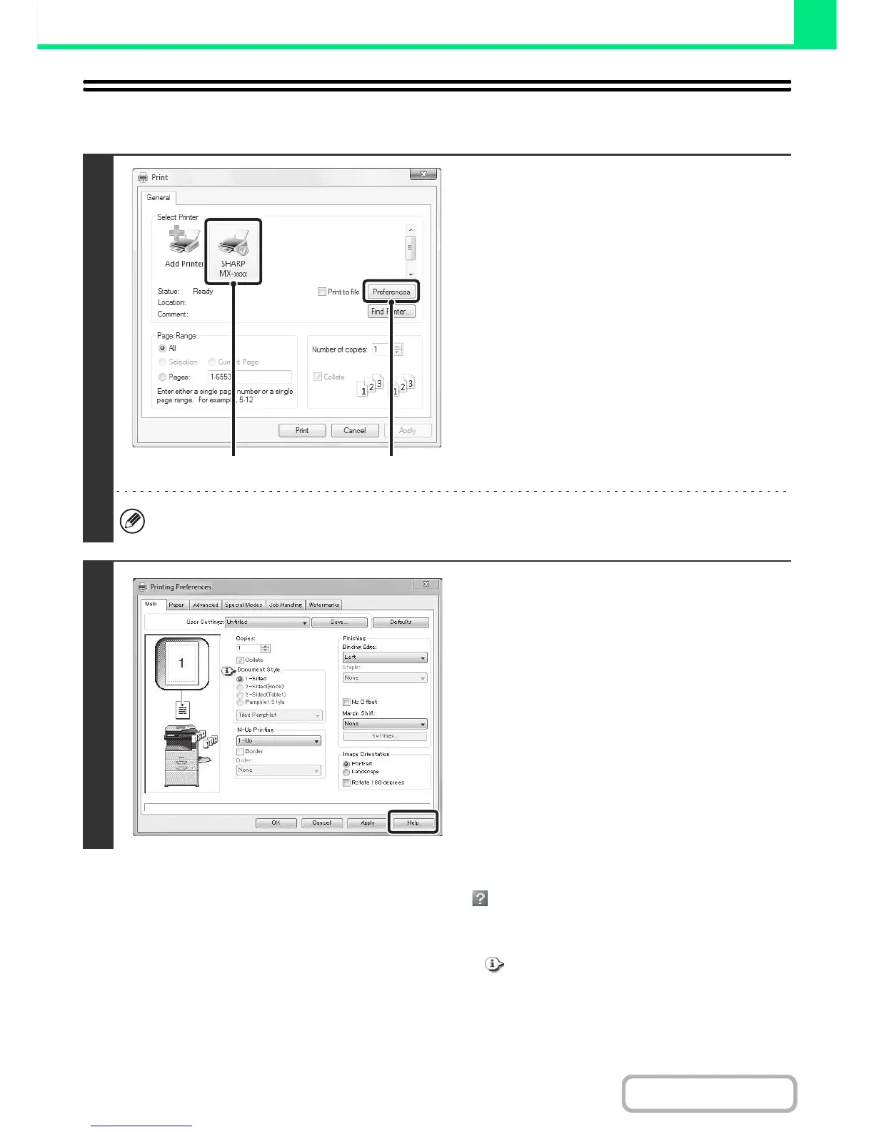 When selecting settings in the printer driver, you can display Help to view explanations of the settings.