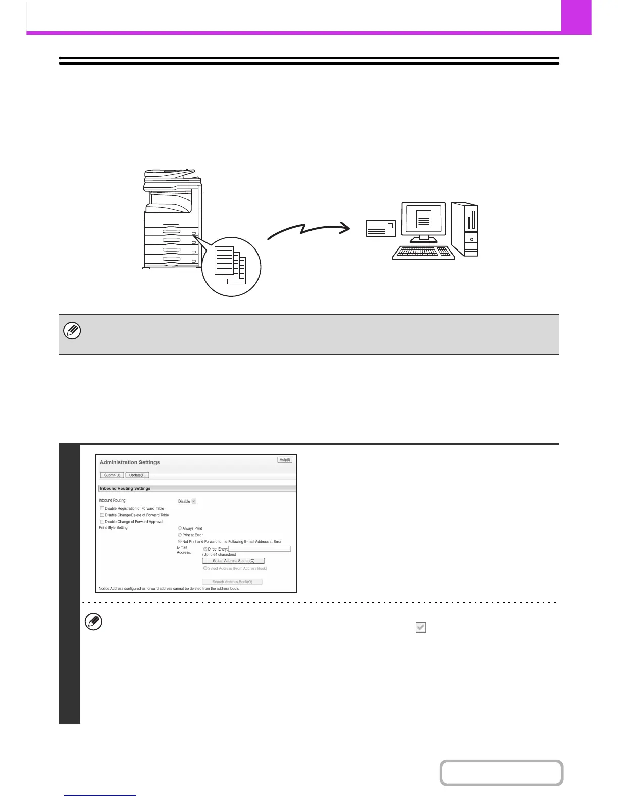 When inbound routing is enabled, you can also specify whether or not you wish the machine to print the forwarded faxes.