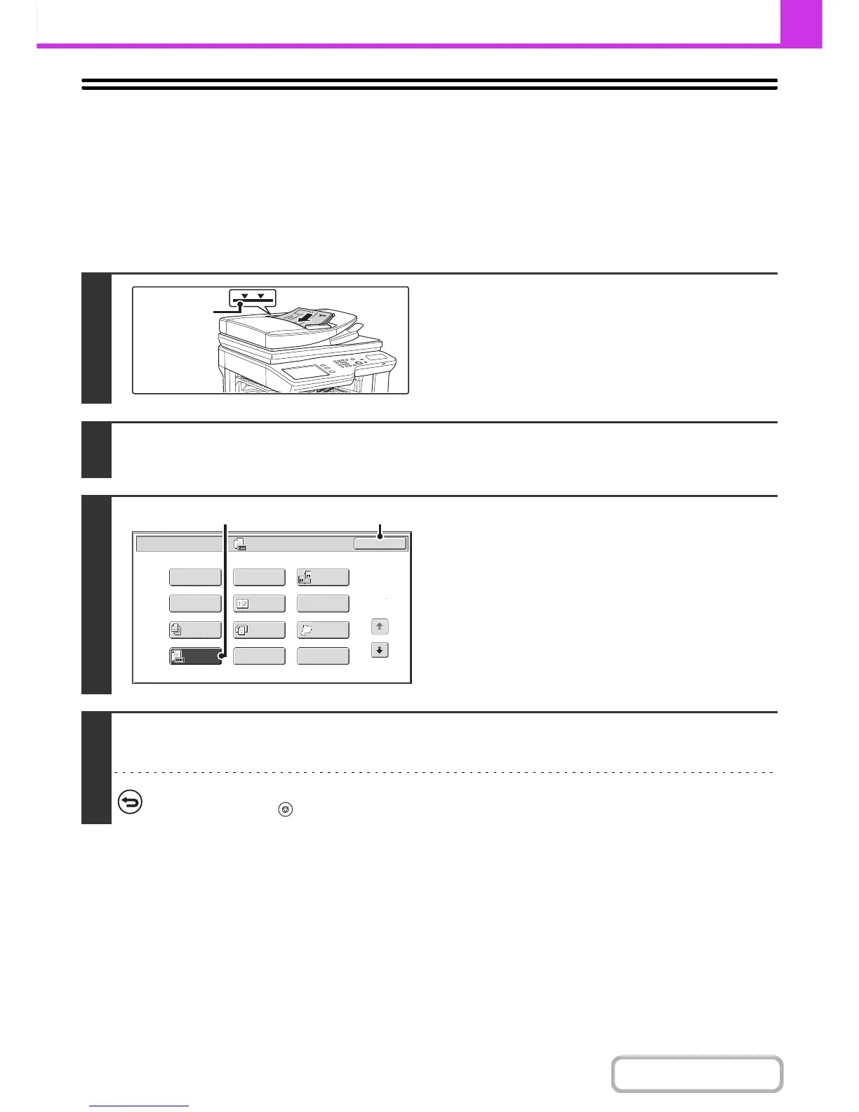 The number of scanned original sheets can be counted and displayed before transmission. Checking the number of
