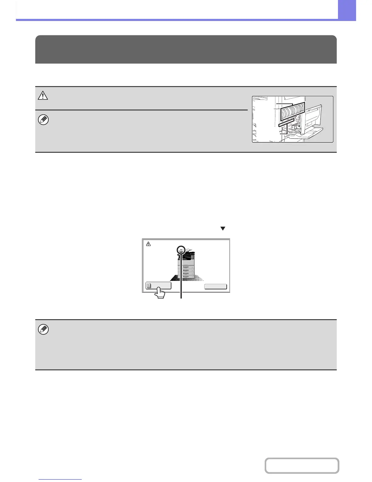 The fusing unit is hot. Take care not to burn yourself when removing a misfeed.