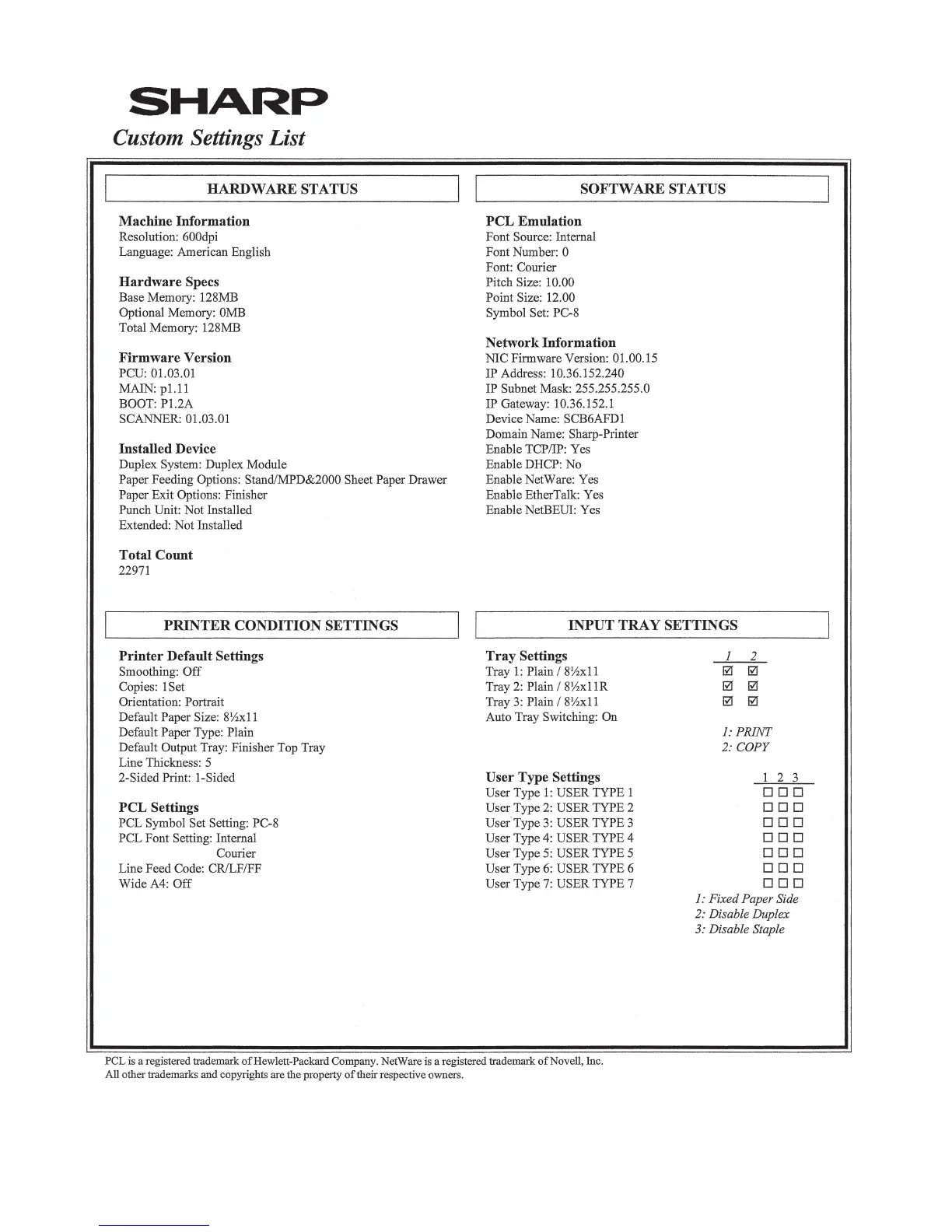 C. Configuration report (Test page)