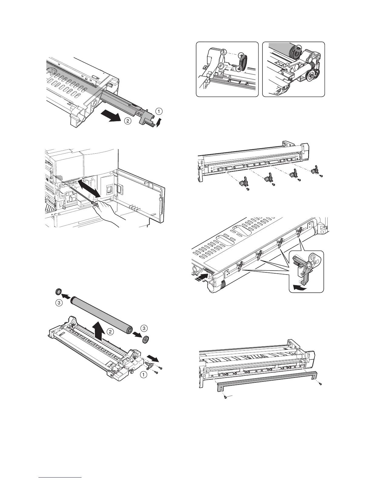 2) Loosen the screw, and remove the drum boss mounting plate.