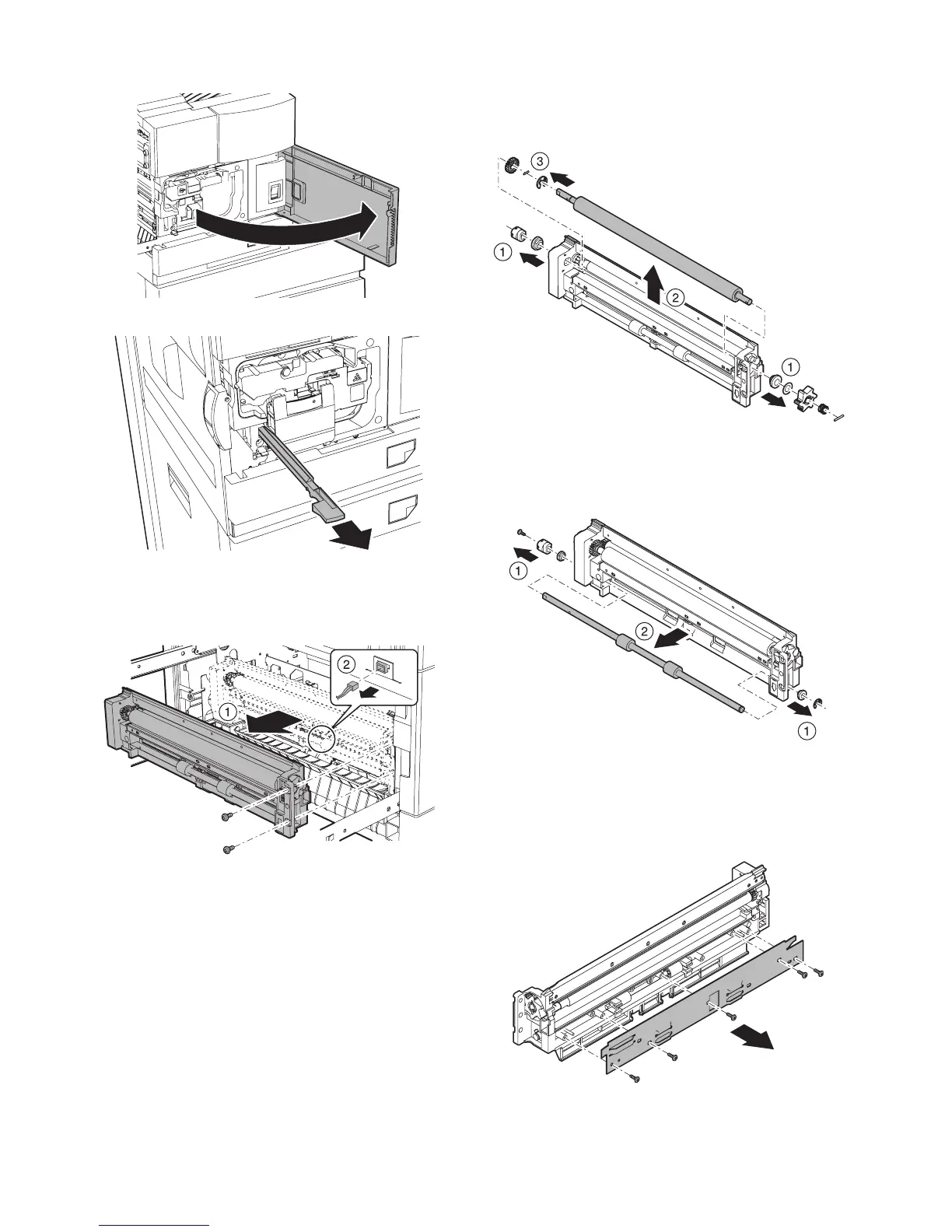 3) Remove the screw, and remove the paper dust cleaner guide.