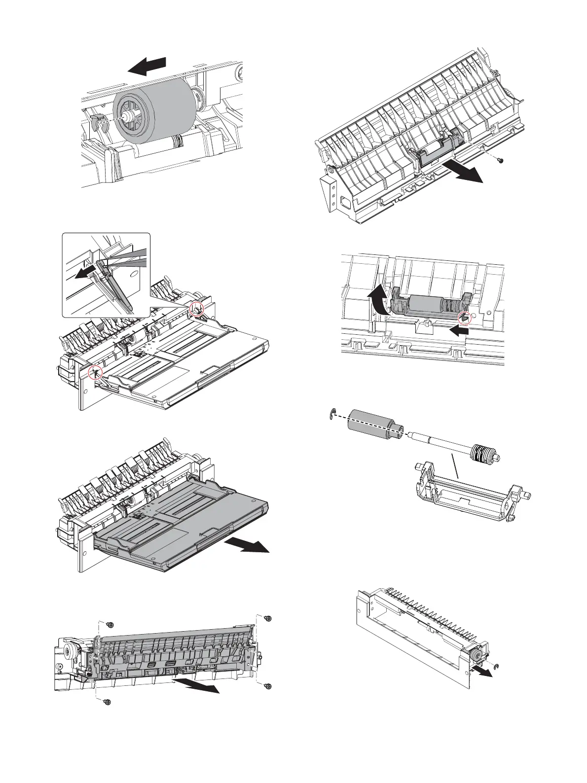 6) Remove the E-ring, and remove the paper feed roller.