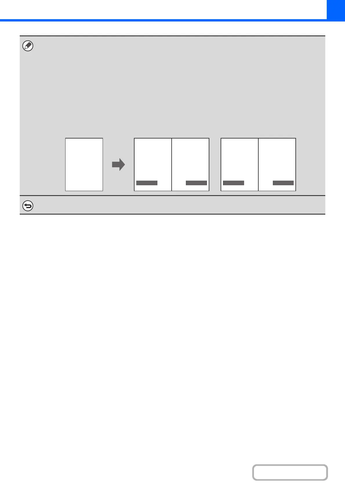 Example: When four pages are copied using pamphlet copy and the page number format is "1, 2, 3...", the result is as