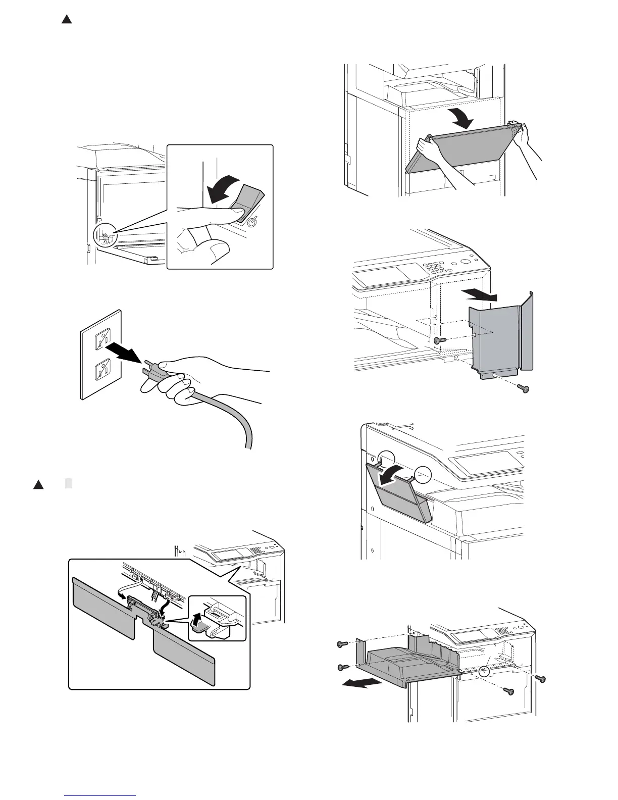 3) Disengage two pawls, and remove the paper exit tray cover.